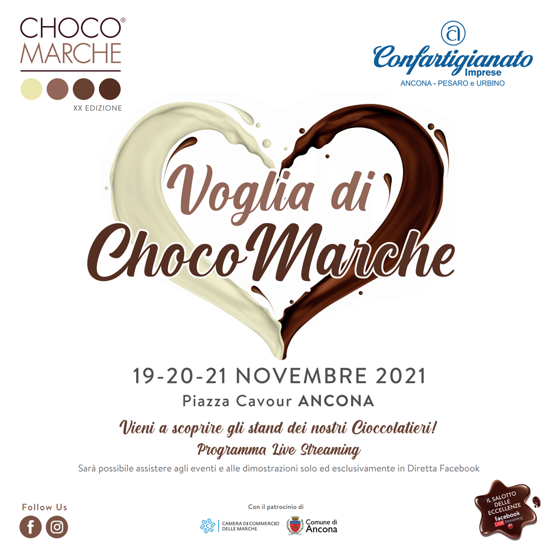 Choco Marche rappresenta un importante evento di Confartigianato in collaborazione con il Comune, la Camera di Commercio delle Marche, la Regione, dedicato al cioccolato artigianale.